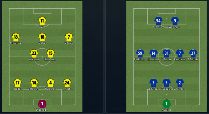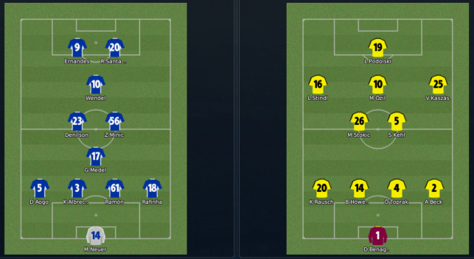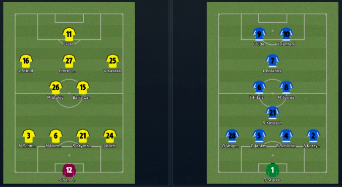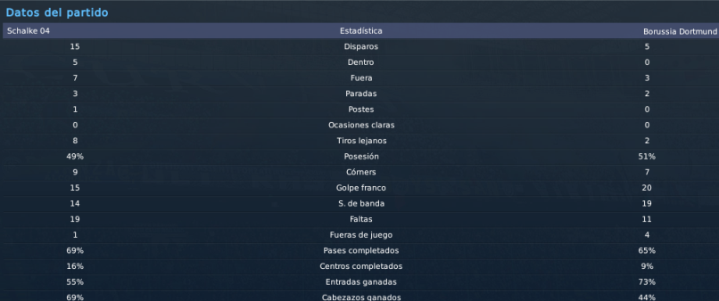 Clásico de la región de Ruhr buscando mantener la ventaja sobre un Leverkusen que se nos venía encima. Kohler paró un equipo bastante mixto entre titulares y suplentes debido a las ausencias por lesión y cansancio. Enfrente un rival peligroso que cumple una temporada bastante mediocre navegando en mitad de tabla. Poco para perder y mucho por ganar entonces para Schalke.