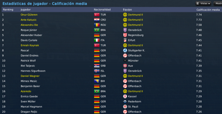 Retomando desde donde deje (no mucho esta vez xD) tenemos buenos jugadores en el Dortmund II pero destaco sobre todo a Ilie, los dos arqueros y el brazuca que me parece no va a tardar aparecer entre los del primer equipo. Tiene buen futuro pero no hay que quemar etapas como se dice.