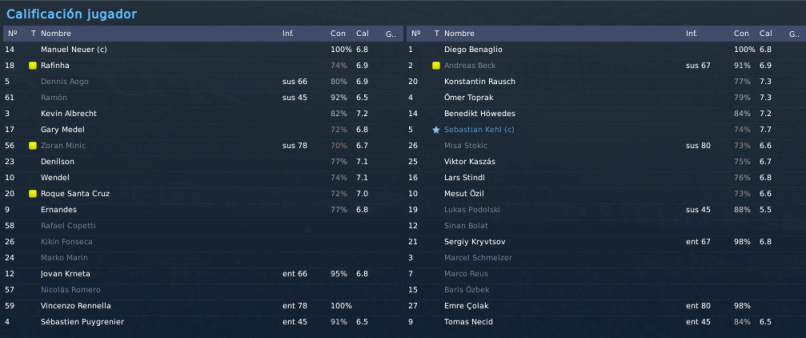 Por suerte llegó el triunfo clave ante Leverkusen con un nuevo aporte goleador de Necid (checo, no ruso ;)) y retomamos la ventaja sobre nuestros escoltas, lo que hará que enfrentemos el mes siguiente de otra forma. En defensa estamos fuertes, la verdad que no recibimos goles y la suerte ayuda de vez en cuando obvio :biggreen.