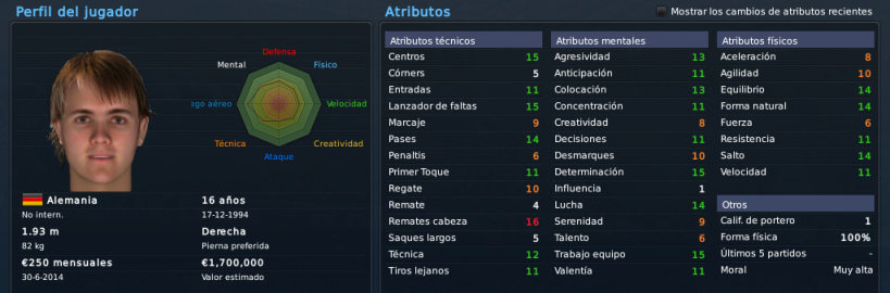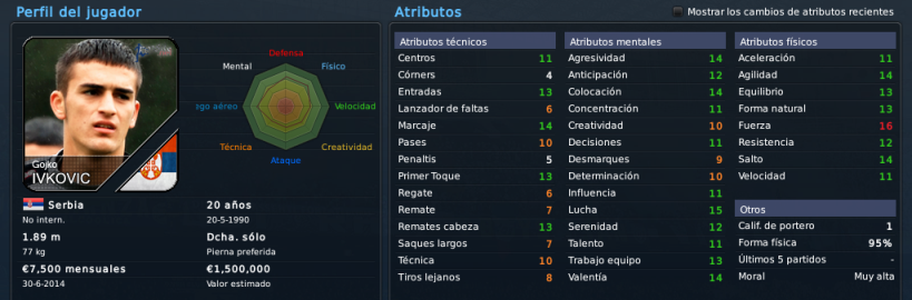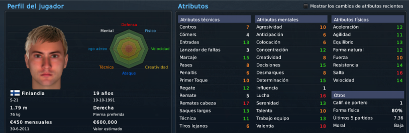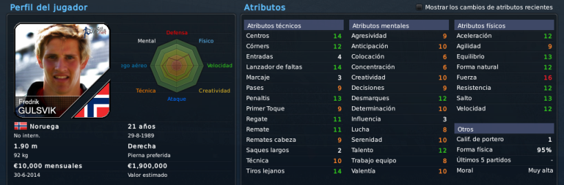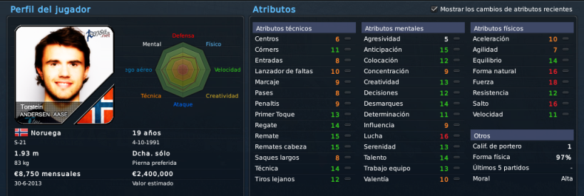 Sobre los recién llegados, me gusta el noruego, bastante equilibrado en sus tres aspectos, aunque se nota que el juego aéreo es su principal fuerte. A Ochirosii lo conozco por partidas esporádicas, y pese a su juventud me rendía bastante bien, veremos qué tal lo hace en el equipo de Koller. Al lateral finlandés ya lo conocíamos y es un acierto hacer efectiva la opción de compra, mientras que el serbio se nota sólido, faltaría ver si tiene potencial a desarrollar según los preparadores, o si ya se estancó ahí. El noruego Gulsvik me parece el más 'flojo' de todos los llegados, quizá le falta mejorar en lo mental, pero bueno, llega libre y sabemos que Kohler sabe hacer negocios a futuro bastante bien xD.