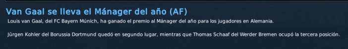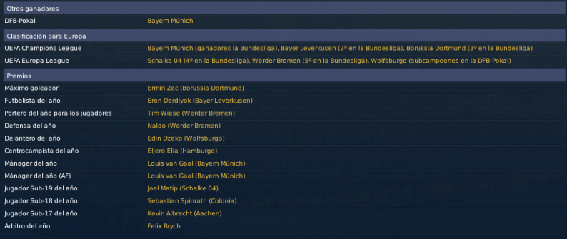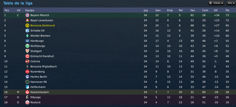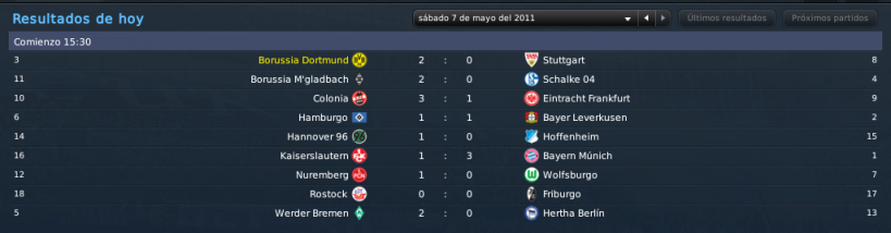 Mis cuentas pasaban porque el Scheisse empatara, así que olvídate de ellas. :biggreen Queda todo pendiente para el último encuentro, y viene de visita otra de nuestras bestias negras. Un momento perfecto para acabar con ese mal fario, ganarle al Stuttgart y meternos en Champions con la sensación del trabajo bien hecho. Eso sí, para el año que viene, me subo al carro de zeusitos y exijo títulos, eh. Que hemos gastado un dinerillo interesante en fichajes, ya toca ganar algo! :biggreen