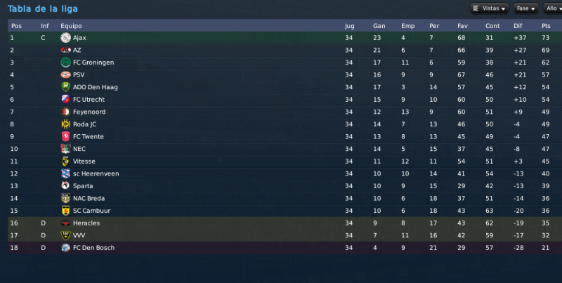 En cuanto a refuerzos, el portero es primordial pero está muy complicado para conseguir a un precio "normal" (he llegado a 20M de oferta y casi nada
