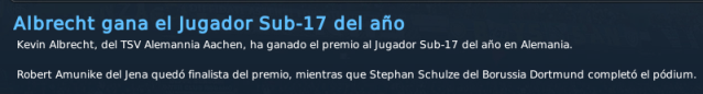 arribado en el mercado de invierno, el joven talento germano (convocado a la selección alemana nuevamente en este último mes de temporada) demostró paulatinamente que vale lo que se pagó por él. Fue un jugador importante en la Bundesliga, porque no pudo actuar en Europa, pero las esperanzas depositadas en él son mucho mayores aún. De más está decir que es totalmente intransferible.