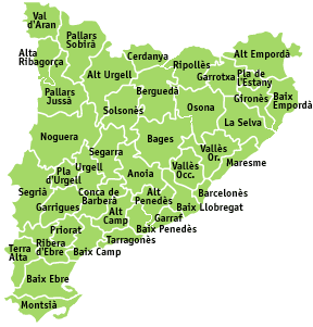 Catalunya, esta divida por 4 Capitales y 41 Comarcas. Pulsa encima para ver imagenes