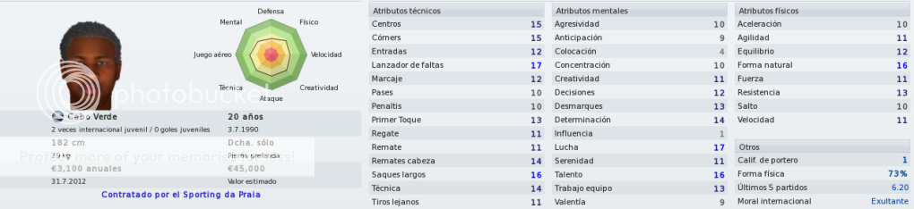 Agosto 20, 201114 años Autor Xx_NeYMar11_xX Sin ninguna duda Mali es el principal favorito para acceder a la fase final de la Copa de África en nuestro grupo. Creo, sinceramente, que Liberia podría ser un rival bastante duro para nosotros y me conformaría con lograr la tercera place en detrimento de Zimbabue. En cuanto a Pereira, es de largo la mejor noticia desde que Larsson ha accedido a la selección de Cabo Verde. Es un jugador que hace subir un escalón el nivel del combinado caboverdiano. Por último, como ya comenté, me ha sorprendido gratamente el nivel general existente en la preselección de jugadores. Tendremos bastantes opciones para elegir. sarandonga Como le comento un poco más arriba, poder contar con Pereira es un notición. Contamos, ahora, con dos hombres como Valdo y el propio Pereira que para una selección como Cabo Verde es tremendo. En cuanto a lo que comentas de los regens, decirte que, navegando entre los jugadores disponibles para ser elegibles he encontrado a una perla de 20 años que, como verás a continuación, ha sido inmediatamente incluido en la lista de convocados para el partido de Senegal. Se trata de Alair Gomes do Rosário , un joven mediocampista diestro de apenas 20 años que milita en el Sporting de Praia, el mejor equipo del país que se ha llevado 8 de las últimas 13 ligas, y pinchando en su nombre tienes su perfil. Un crack.