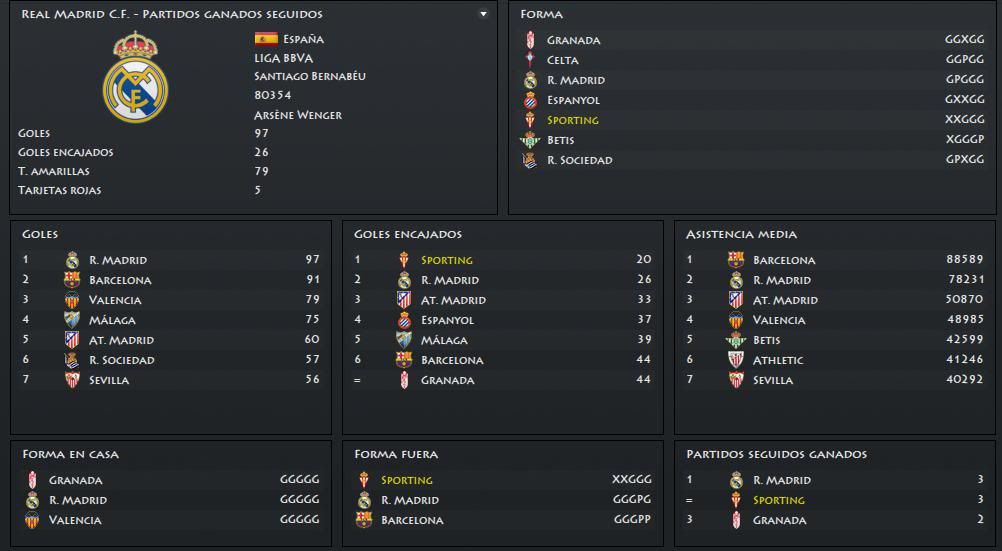 En liga, los rojiblancos pisaron el acelerador y ganaron los tres partidos que les quedaban, todos ellos fuera de casa. Un 0 a 3 al Málaga, un 0 a 1 al Zaragoza y un 1 a 2 al Sevilla, permitieron que el Sporting terminara la temporada como tercero con 74 puntos, a un solo punto del Barcelona que fue segundo. De esta forma, los de Clemente jugarán la Champions la próxima temporada sin necesidad de jugar ronda de clasificación previa. Para la posteridad quedan los 20 goles que encajó Joel Robles en los 38 partidos de liga, que constituyen el mejor registro histórico únicamente por detrás de los 18 encajados por el Deportivo de la Coruña en la temporada 1993/1994.