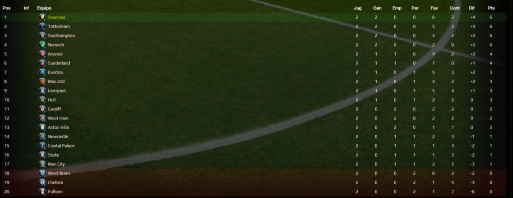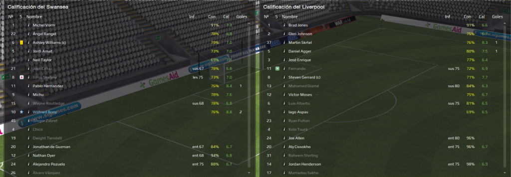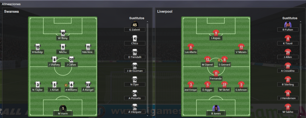 En la tarde de hoy se enfrentaban el Swansea y Liverpool en la segunda jornada de la temporada 2013/14 de la Premier League. En el Liberty Stadium había una asistencia de 20632 espectadores. Los jugadores descartados de Pepe Mel fueron: Lamha, Kalas, Ben Davies y Britton.