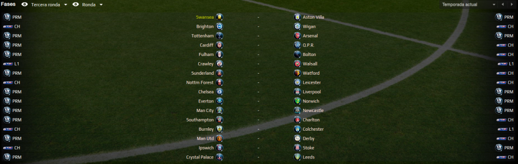 Poco tiempo hemos tardo en saber a que rival le va tocar al Swansea, ya que fue el primer equipo en salir, que le toco el Aston Villa de Paul Lambert. El Aston villa es un equipo de la ciudad de Birmigham y que actualmente disputa la Premier League. Tiene jugadores buenos que seguro le van a poner muy dura el pase a la siguiente ronda al equipo gales. El equipo gales va salir a por todo después de haberse llevado el año pasado la copa.