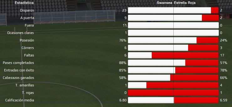 El Swansea City pasa de ronda en la Europa League, tras empatar 1-1 contra el Estrella Roja en gales, en el partido de ida el equipo gales cosecho un buen resultado y hoy se confirma el paso de ronda. En el Liberty Stadium había 20743 espectadores y con una temperatura de 21 grados.