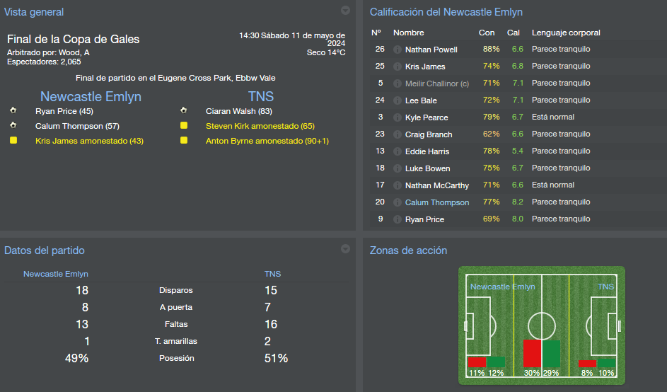 Para ganar nos faltó vencer en alguno de los partidos al TNS, sobretodo en los de la fase final. Ya es delito que para una temporada en la que el "amo y señor del fútbol galés" pierde siete partidos no consigamos vencerles ni empatarles ninguno pero al menos tuvimos una revancha en copa, algo es algo.