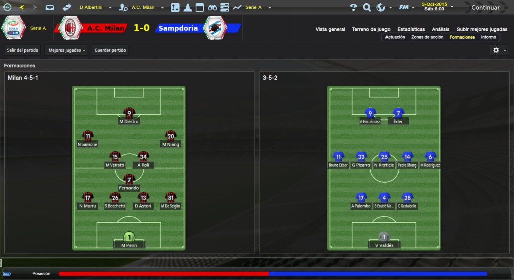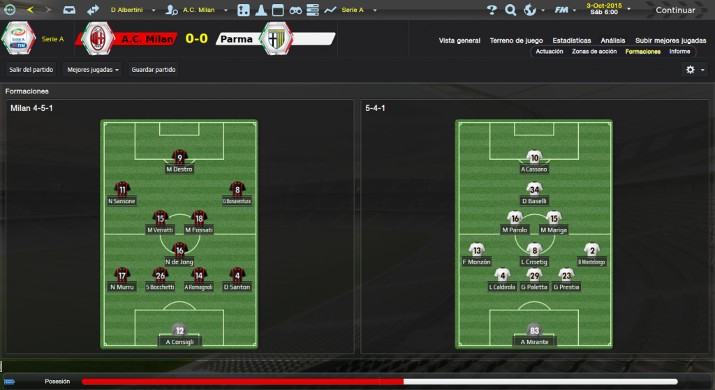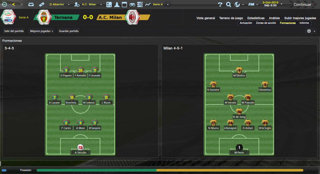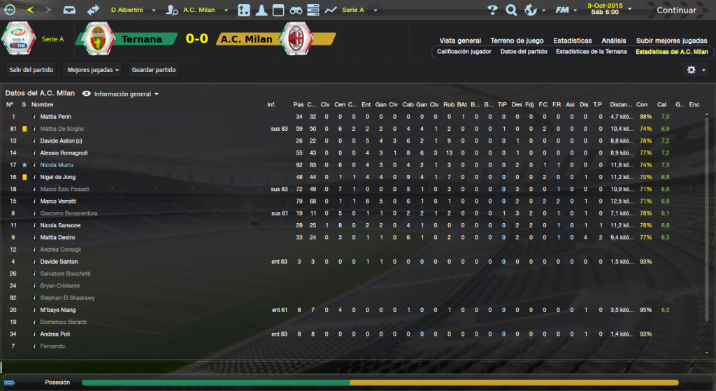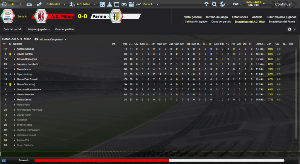 Excelente plantel hemos construido en poco tiempo, balanceado y completo por donde se lo mire. Me encantaría ver a De Jong y Fernando afuera jeje, Cristante es bueno en serio con el tiempo, dale chances. No recuerdo si te hablé de Pugliese, otro bueno, fijate. Tenemos talento en Poli, Verratti y los mediapuntas, además de arriba con Berardi principalmente. La verdad, un cuadrazo, deberías ganar la Serie A de punta a punta, no es por meter presión xD. A ver si vemos más minutos de Angella en esta temporada.