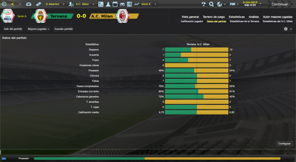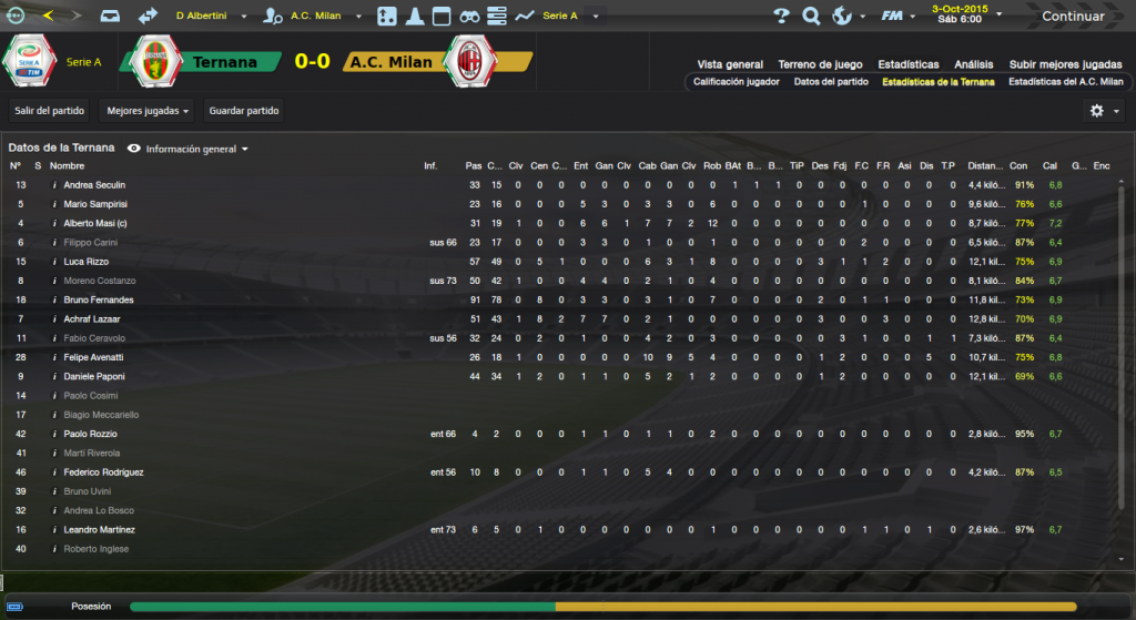 No fue la mejor visita a uno de los equipos recién ascendidos a la categoría, el Ternana, ya que no pudimos romper el 0 en el marcador. Usamos la rotación por primera vez, pensando en el importante encuentro dentro de 3 dias frente a la Juventus, pero nos encontramos con un equipo mas difícil de lo que esperábamos. Tuvimos la chance de ponernos en ventaja por medio de un penal ejecutado por Bonaventura, pero su remate se fue desviado. El equipo local esta teniendo un buen arranque de torneo, y se hizo notar hoy en el encuentro que disputamos. Otra buena actuación de la defensa y el arquero, que siguen con la valla invicta en el torneo local, pero se notó la falta de peso ofensivo en el partido. Fosatti, el reemplazante de Poli, no estuvo en su mejor forma para hacer jugar al equipo, fallando muchos pases que repercutió a la hora de generar peligro. Y Destro, que tuvo sus chances, no pudo concretarlas por la buena actuación del arquero local. Perdemos dos puntos vitales en la pelea por el torneo, ya que Juventus ganó su encuentro y se nos va a dos puntos de distancia.