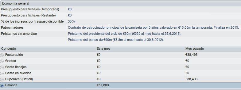 Aquí viene lo malo, en el tema económico, el balance es muy positivo (casi 60.000€), pero hay una deuda con el banco de 120k y otra con el presidente por valor de 30k, que serán devueltas antes de 2015 y que nos sacarán casi 4.000€ al mes de la caja. A esto hay que sumarle un presupuesto para sueldos de 40.000€ anuales y unos sueldos totales de 70.000, así que habrá que reducir drasticamente la plantilla, antes que los resultados deportivos está la supervivencia del club, como es lógico. Así que si no se sube, pues no se sube por mucho que la directiva pida que nos llevemos la liga con la gorra, hay que supeditarlo todo a salvar el club de la quiebra. Además somos cantera del Sporting, que milita en Primera, no recibimos nada de dinero, pero vienen por Oreyana y nos ceden a jugadores a cambio de tener derecho de igualar las ofertas que aceptemos, vamos, un chollo.