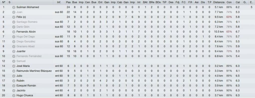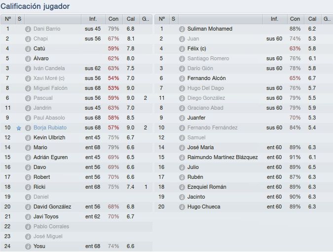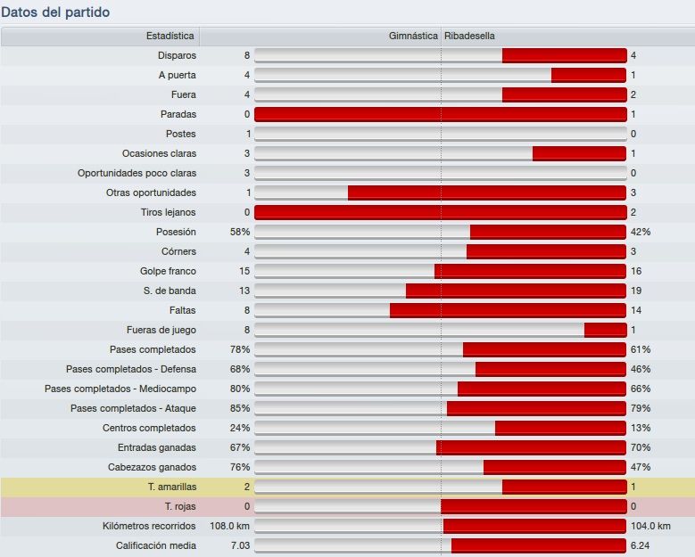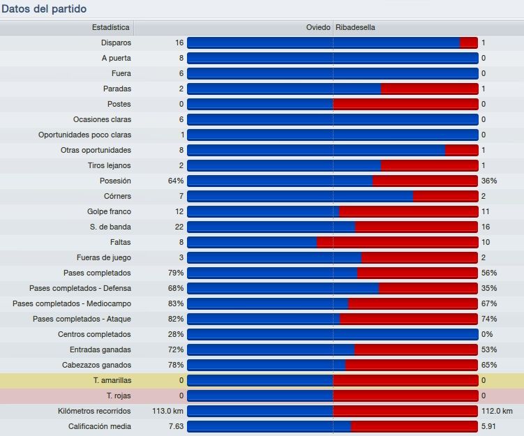 Tácticas | Estadísticas del partido | Calificaciones | Estadísticas del Ribadesella