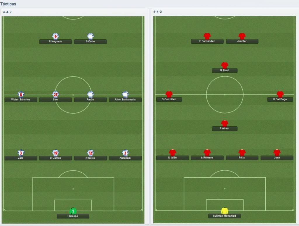 Arrancó la segunda parte con 3 cambios en las filas riosellanas, y es que había jugadores con la lengua fuera, entre ellos Félix, el eje de la zaga, y Alcón, que realizaba el trabajo sucio; y los recambios pues no hicieron igual de bien el trabajo. Y así llegó el gol de Negredo a los dos minutos, que gana la defensa a los centrales que estaban dormidos.