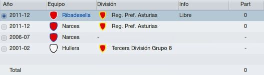 • 2011/2012: Ribadesella C.F. (Regional Preferente Asturiana)