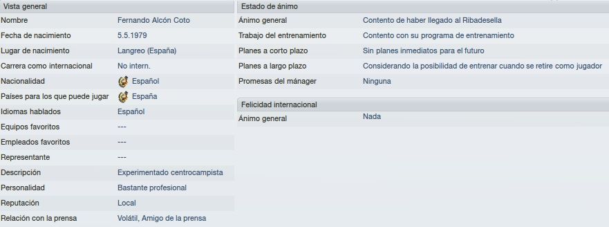 Se acabaron las vacaciones en Peñíscola de Fernando Alcón y su familia, y el veterano mediocentro rubrica su contrato con el Ribadesella. Este contrato tiene validez de un año y un valor de 2.300 euros, que fue la cantidad acordada tras una rápida negociación entre Pelayo Álvarez, el técnico riosellano, y el exjugador del Narcea. El Narcea, equipo de Regional Preferente, dejó irse de forma gratuita al mediocentro y no fue necesaria la negociación entre ambos clubes. Además de las vacaciones, según ha trascendido, retrasaron el fichaje pequeños flecos, como la prima por partido (será de 6€ finalmente) y la prima por gol (1 exiguo euro). De todas formas no fue fácil conseguir su fichaje, puesto que varios equipos de Tercera División mostraron interés por este futbolista. El Betanzos gallego y Barquereño y Pontejos de Cantabria, todos ellos militantes de la Tercera División tuvieron algún contacto con el jugador, que prefirió quedarse en Asturias por motivos familiares. "Ya tengo una edad y no estoy para salir fuera a intentar vivir del fútbol. Me lo tomo más como un hobby y teniendo un equipo a menos de una hora de casa pues no me voy a ir fuera."