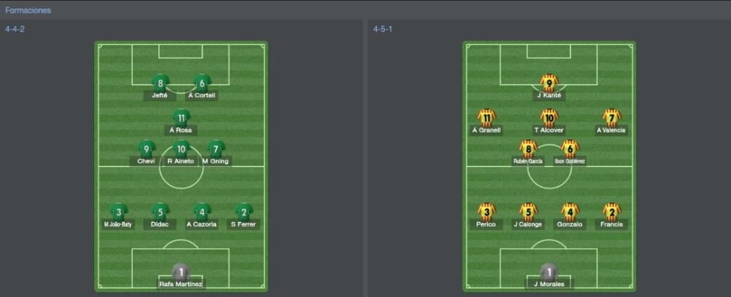 No se podía reservar nada para este partido donde se había mucho en juego por parte de ambos conjuntos. La alineación visitante era la conocida, dando entrada a Santiago en el centro del campo por el sancionado Gning.