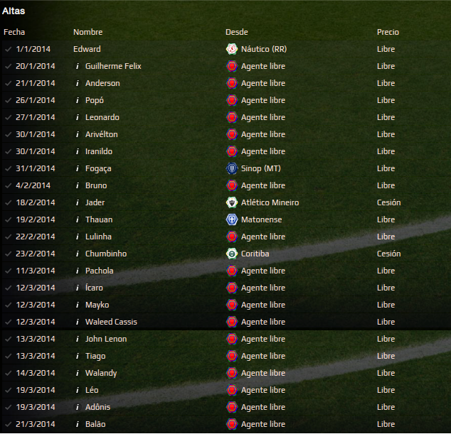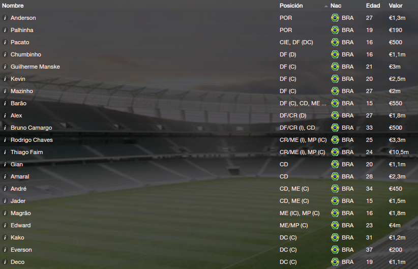 @nenogaliza Bienvenido a la aventura, nunca mejor dicho :biggreen Brasil fue el primer punto de contacto con el futbol sudamericano, en este caso, la division mas baja de las que tengo cargadas en la partida (en Argentina no use el archivo que habilita hasta la 5ª Division), pero no vamos a estar limitados a Brasil. Ya veras que con lo hecho en Fluminense de Feira nos vamos a tener que buscar los porotos en otro lado. Intente hacer un lavado de cara con los fichajes, ademas de tener por delante 70 dias de parate que nos permitian armar el bloque nuevamente, que se conozcan entre si y tratar de evitar lo que fue inevitable.