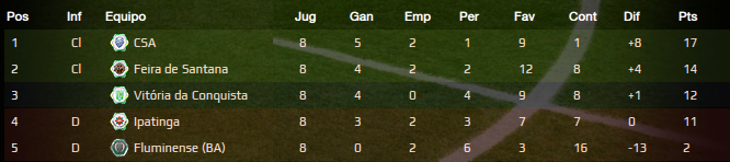Quedamos encuadrados en el Grupo 1 de la Serie D, junto con el CSA, el Feira de Santana (rival clasico), Ipatinga y Vitoria da Conquista. El CSA es el equipo candidato a pasar a la proxima fase, teniendo en cuenta que logro 3 subcampeonatos de Segunda Division durante la decada del '80, y es amplio dominador del estadual de Alagoas, aunque desde 2008 que no gana el titulo, y un subcampeonato en la Copa Conmebol (torneo continental ya extinto). El Ipatinga es el otro candidato, recien descendido de la Tercera Division, y que ya tuvo su experiencia en el Brasileirão (Primera Division) en 2008. El Vitoria da Conquista tambien es otro de los candidatos a clasificarse, habiendolo conseguido ya la temporada pasada y quedar a un paso del ascenso, tras caer derrotado en Cuartos de Final (asicenden 4 equipos). Por lo que nos queda el Feira de Santana, que sera un rival directo para pelear la permanencia, y la clave estara en lo que podamos hacer ante los otros 3 equipos del grupo. Se juega todos contra todos, a ida y vuelta, por lo que seran 8 partidos a todo o nada, aspirando a alcanzar la 3ª posicion que nos mantenga en la categoria.