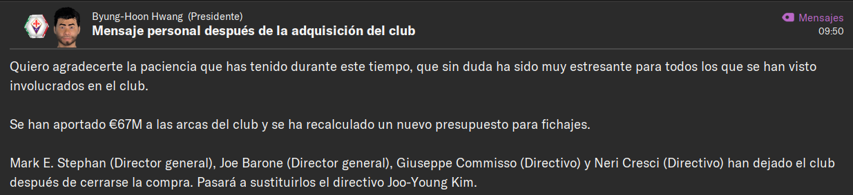Bendito magnate surcoreano. Suerte con la Fiorentina.